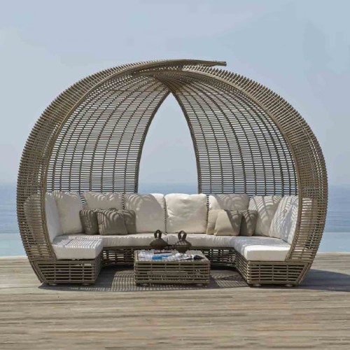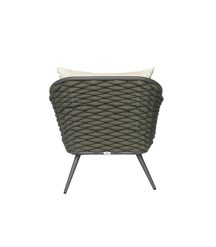 The organic shapes provided by the handmade braiding with synthetic fiber rope woven sinuously on the aluminum structure make this collection a perfect option for any space.